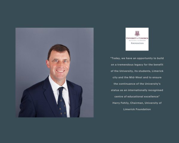 “Looks forward to assisting Harry’s continued leadership in delivering the University of Limerick Foundation’s objectives. The University of Limerick Foundation ensures philanthropic funding continues to underpin UL’s prestigious role in higher education in Ireland.”
